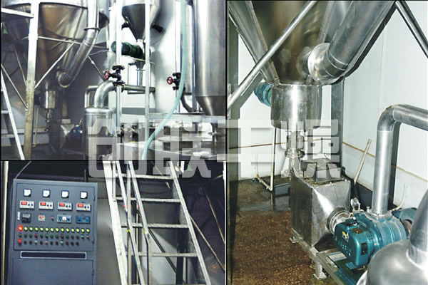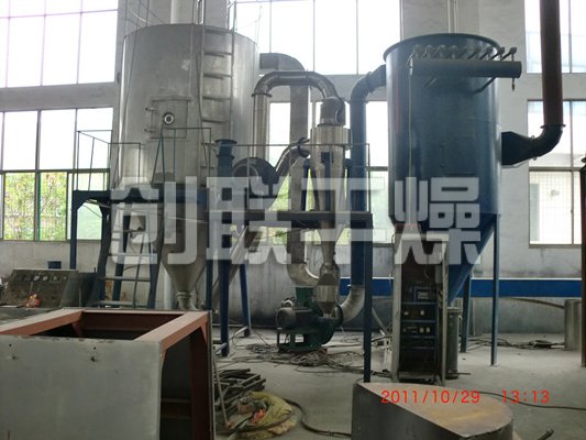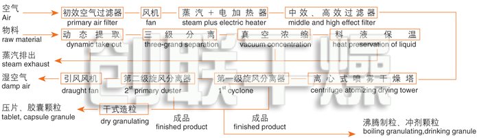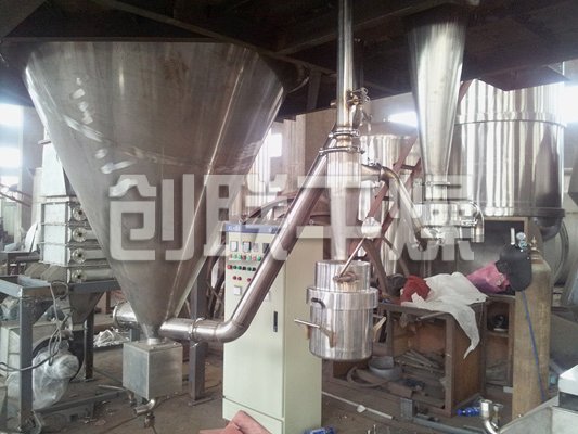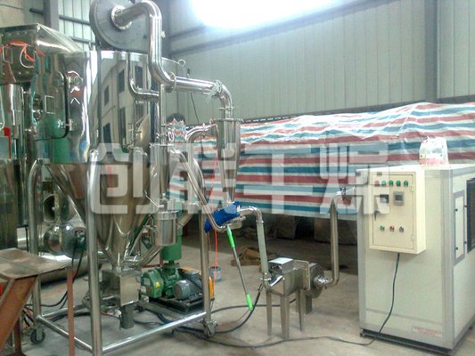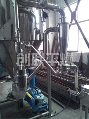該機(jī)采用全封閉形式,所有部件均采用不銹鋼制造,配有三級(jí)凈化裝置,過濾后的空氣達(dá)十萬(wàn)級(jí)要求。筒體與頂部裝有冷壁裝置,使壁溫<80℃,干燥塔內(nèi)裝有氣刷掃塔裝置。經(jīng)該機(jī)干燥后的中藥浸膏粉,不會(huì)出現(xiàn)焦化變質(zhì)現(xiàn)象,大大增加了收粉率(95%以上),而且不會(huì)產(chǎn)生混藥現(xiàn)象和粘壁現(xiàn)象。