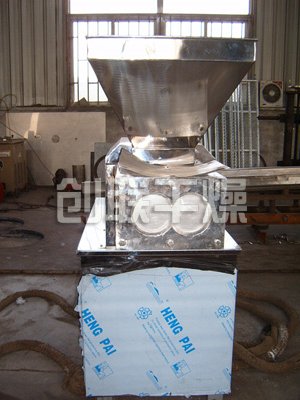 擠壓造粒的形式可以有對輥式和輪輾式兩種,對輥式擠壓是先壓成大塊,再破碎成顆粒,這樣裝置的能力大、顆粒強度高、能耗低,對輥擠壓在國外使用廣泛。輪輾式是在輥表面直接做成有穴槽型的形狀,一次擠成成型顆粒。產品強度較低有時需添加粘結劑。適合做有機肥和復合肥等顆粒肥料。